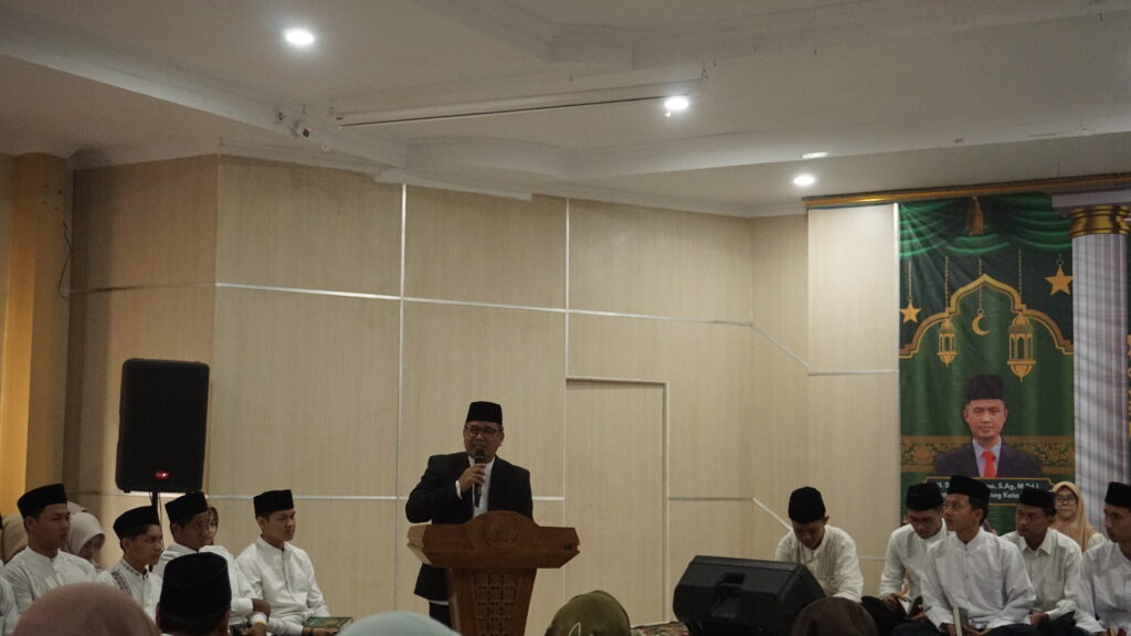 Kemudian acara dilanjut dengan pembacaan doa Khatmul Quran oleh para Khatamil Quran dan dipimpin oleh Bapak Ade Rahmat Gumilar, S.Pd. Kepala Kantor Kemenag Kota Bogor, H. Dede Supriatna S.Ag., M.Pd.I memberikan sambutan, arahan serta tausiyah.