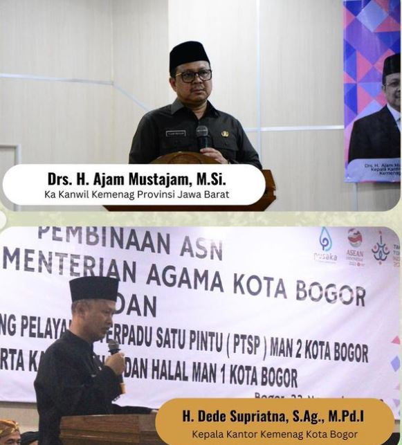 ASN Kemenag Kota Bogor mengikuti pembinaan secara langsung oleh Kepala Kantor Wilayah Kementerian Agama Jawa Barat, Drs. H. Ajam Mustajam, M.Si., yang merupakan kegiatan lanjutan dari peresmian gedung PTSP MAN 2 Kota Bogor dan Kantin Sehat MAN 1 Kota Bogor pada tanggal 23 November 2023 di Aula MAN 2 Kota Bogor.